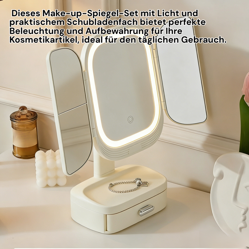 Faltbarer Schminkspiegel mit Beleuchtung und Aufbewahrungsschublade, unverzichtbar für Badezimmer