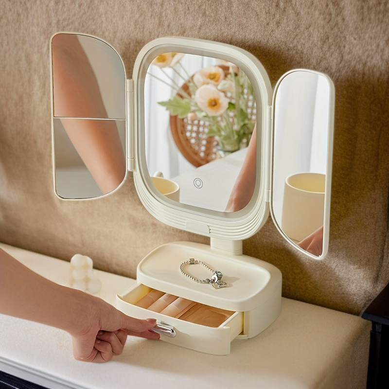 Faltbarer Schminkspiegel mit Beleuchtung und Aufbewahrungsschublade, unverzichtbar für Badezimmer