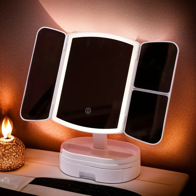 ● Innovativer Aufbewahrungsständer mit integriertem Touchscreen-Schönheitsspiegel – sorgt für perfekte Beleuchtung und erleichtert das tägliche Make-up. ● Vielseitige und großzügige Fächer bieten ausreichend Platz für Kosmetik, Schmuck und Accessoires – alles ordentlich und griffbereit an einem Ort. ● Stilvolles und modernes Design, das jedes Schlafzimmer oder Badezimmer aufwertet – ein eleganter Hingucker für anspruchsvolle Damen. ● Perfekte Geschenkidee für Frauen zu jedem Anlass – ob Geburtstag, Weihnachten oder einfach als liebevolle Überraschung zwischendurch. ● Hochwertige Verarbeitung und langlebige Materialien garantieren eine lange Nutzungsdauer und Freude an diesem praktischen Beauty-Organizer.
